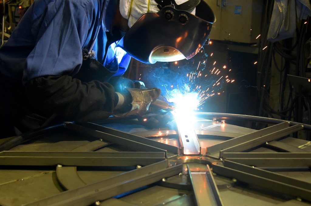 自社で加工した鉄骨やパイプは自社で溶接も行います。